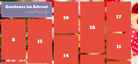 Das P-Seminar Sport hat für den Advent einen Adventskalender geschaffen! Viel Spaß beim Öffnen der Türchen!