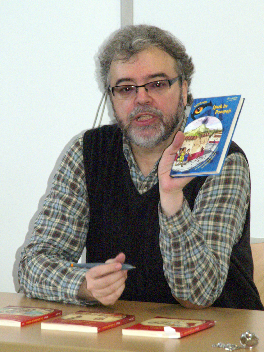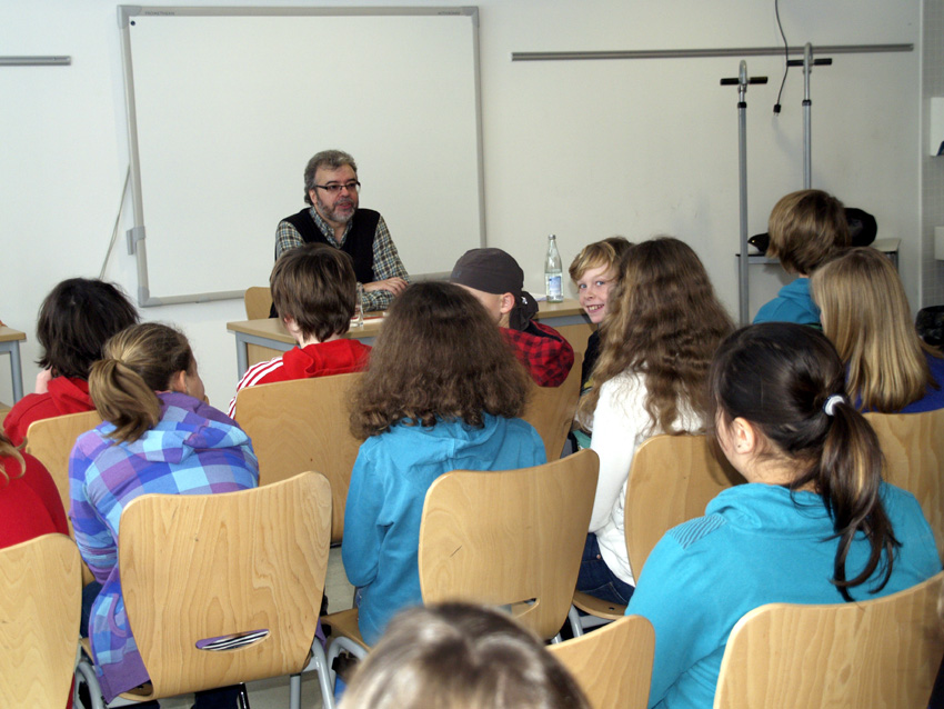 Bereits zum zweiten Mal stattete Franjo Terhart, freier Schriftsteller und ehemaliger Lehrer mit den Fächern Latein und Philosophie, dem Gymnasium Beilngries Mitte Februar einen Besuch ab und entführte die Schüler der 6. Klassen mit einigen seiner Jugendbücher in die Zeit des Alten Roms. Kurzweilig, ansprechend und humorvoll präsentierte er ihnen Auszüge aus seinen Mitratekrimis wie z. B. "Das Geheimnis der Amphore", "Der Sohn des Gladiators" und "Die Augen der Hydra". Dabei war aktives Mitmachen in Form von Rätseln angesagt. So mussten die Sechstklässler zum Beispiel eine Geheimschrift entschlüsseln oder eine Schatzkarte lesen. Daneben gab der gebürtige Essener auch Einblicke in seine Arbeit und beantwortete Fragen der interessierten Jugendlichen. Herzlichen Dank für Ihren aktiven Besuch bei uns am Gymnasium Beilngries!