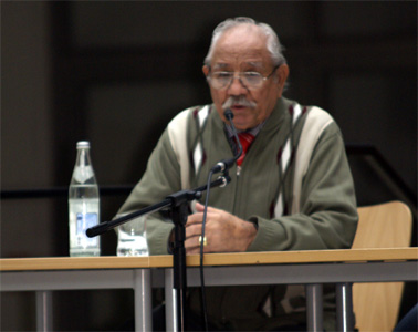 Franz Rosenbach, der in Österreich aufgewachsen ist, wurde als Jugendlicher wegen seiner Zugehörigkeit zur Volksgruppe der Sinti verhaftet und ins Konzentrationslager eingeliefert. Über seine Erlebnisse in verschiedenen Lagern berichtete er den Schülerinnen und Schülern der 9. Klassen. Besonders bewegend war dabei, dass das Geschehen ohne Hass, aber sehr detailliert und anschaulich dargestellt wurde. Am Ende der Veranstaltung konnten die Zuhörer Fragen stellen und die eintätowierte Häftlingsnummer sehen.