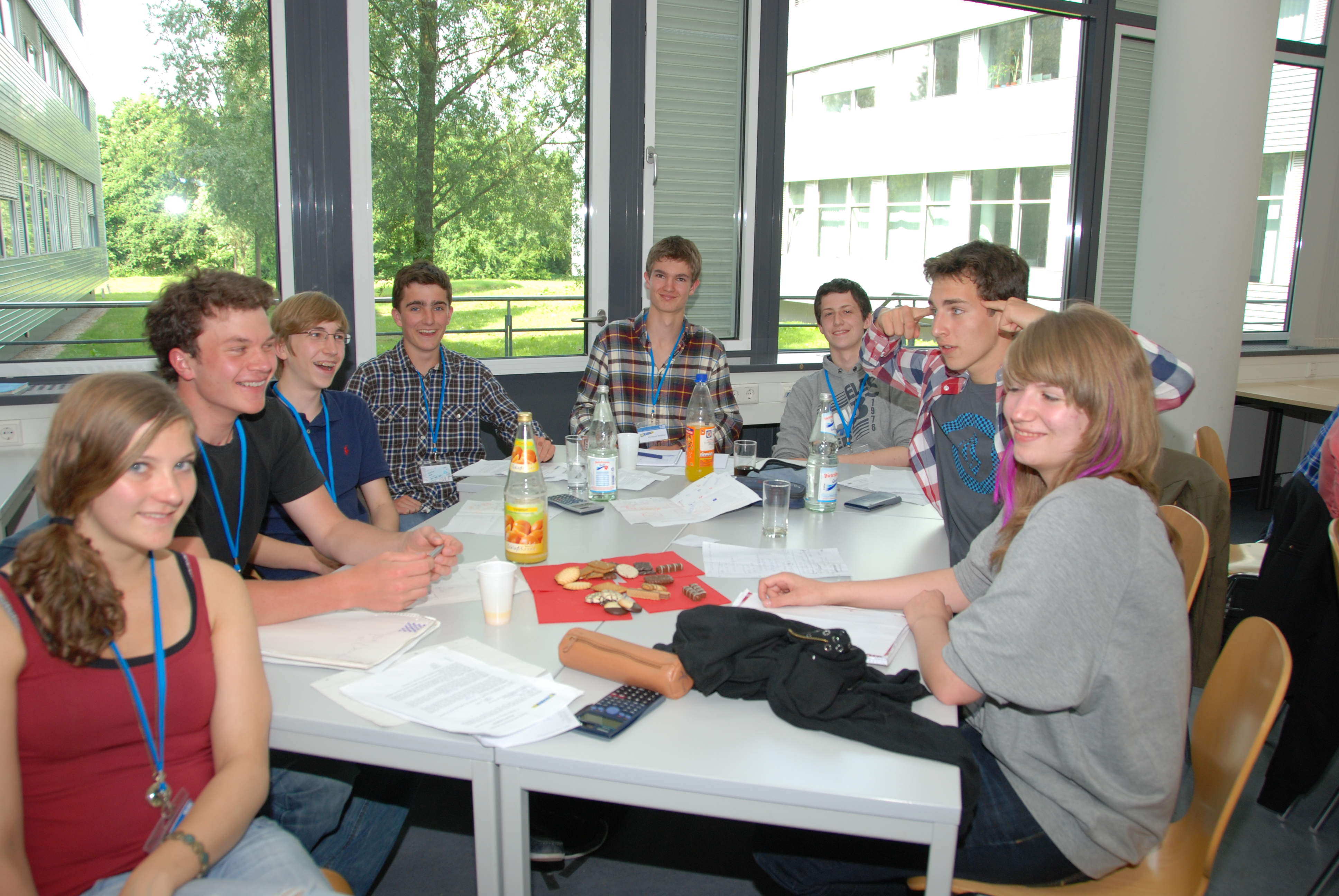 Am Morgen des zweiten Tages wurden wir von Prof. Kemper, dem Dekan der Fakultät für Mathematik, offiziell an der TU begrüßt. Anschließend hörten wir Vorträge zum Thema "Mathematische Optimierung und Sehende Maschinen" und "Verschlüsselte Geheimnisse - Mathematik und Kryptologie". Da wir uns danach selbst daran versuchen konnten, waren diese Vorträge sehr anschaulich und interessant - wenn auch immer noch sehr komplex und auf hohem Niveau. Abends stand noch ein Besuch des Improvisationstheaters "Los Paul" auf dem Programm. Die Schauspieler gestalteten auf unsere Anweisungen und Vorgaben hin ein witziges Programm.