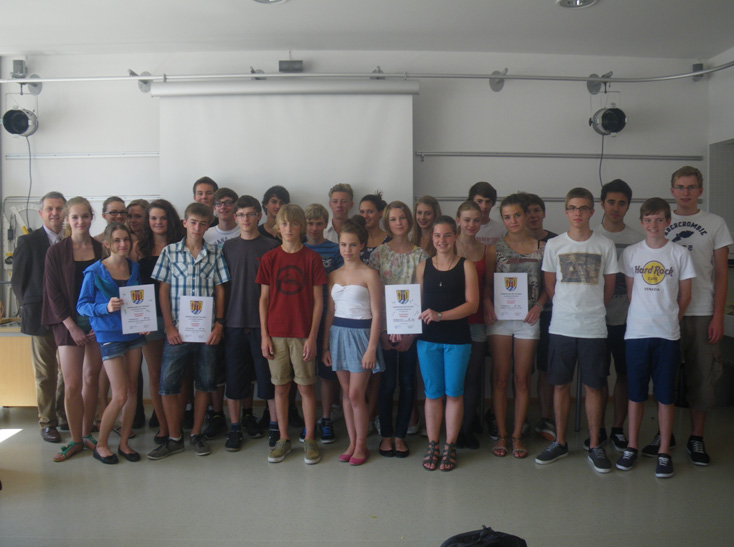 Bei perfektem Wettkampfwetter -frischen Temperaturen und strahlendem Sonnenschein - fuhren unsere Leichtathlet/innen (mit ihren Betreuern Frau Heckner, Frau Brautsch, Herrn Peischl sowie Herrn Dorn) am 10.7.2012 nach Eichstätt auf das Gelände der Bereitschaftspolizei, um sich mit Schülerinnen und Schülern anderer Schulen des Landkreises in verschiedenen Disziplinen der Leichtathletik zu messen. In allen Wettkampfklassen galt es, im Sprint, Weitsprung, Wurf/Stoß sowie auf der Mittelstrecke Höchstleistungen zu bringen. Die älteren Sportler mussten zusätzlich einen Staffellauf über die Kurzstrecke absolvieren. Jeweils drei Mädchen- bzw. Jungenmannschaften wurden von unserer Schule in das Rennen geschickt. Das bedeutete, dass je zwei Teilnehmer/innen von unserer Schule pro Einzeldisziplin an den Start gingen- bei der Staffel natürlich vier - und unter den Augen eines strengen Schiedsgerichtes um Weiten und Zeiten kämpften. Nach der Umwandlung von Leistungen in Punkte standen um 12.00 Uhr die Sieger fest. Da sich fast alle Schulen aus dem Landkreis beteiligten (z.B. Willibald Gymnasium Eichstätt, Gabrieli Gymnasium Eichstätt, Realschule Beilngries, Gymnasium Gaimersheim, Realschule Rebdorf und viele mehr) war die Konkurrenz sehr stark. Trotzdem schafften es unsere Mannschaften zweimal auf das Podest und durften vom Landrat sowie vom Oberbürgermeister der Stadt Eichstätt Bronzemedaillen in Empfang nehmen. Alle anderen Mannschaften mussten sich mit Urkunden zufrieden geben, was der Laune aber keinen Abbruch tat und die guten Leistungen unserer Schülerinnen und Schüler in keinster Weise schmälert. Wir freuen uns schon auf das nächste Jahr!