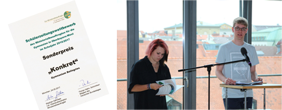 sowie die Chefredakteure der Schülerzeitung Konkret, Niklas Gogl und Max Meyer, gratulierten zu diesem wohlverdienten Sieg.