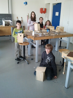 Schulhof aus. Für den Start in das Frühjahr stehen Nistkästen bereit,