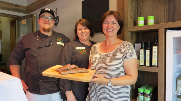 Die glückliche Gewinnerin des Hauptgewinns Frau Rauscher mit den Eigentümern der Metzgerei Herrler in Greding.